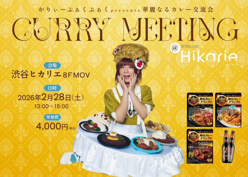 これらの究極に美味しいレトルトカレー(レトルトと言えど、侮るなかれ!)を味わっていただきながら、カレーによくあうライオンビール片手に交流をお楽しみください。かりぃーぷぁくぷぁくと元エスビー食品・鬼頭広樹さんとのトークショーもございます。