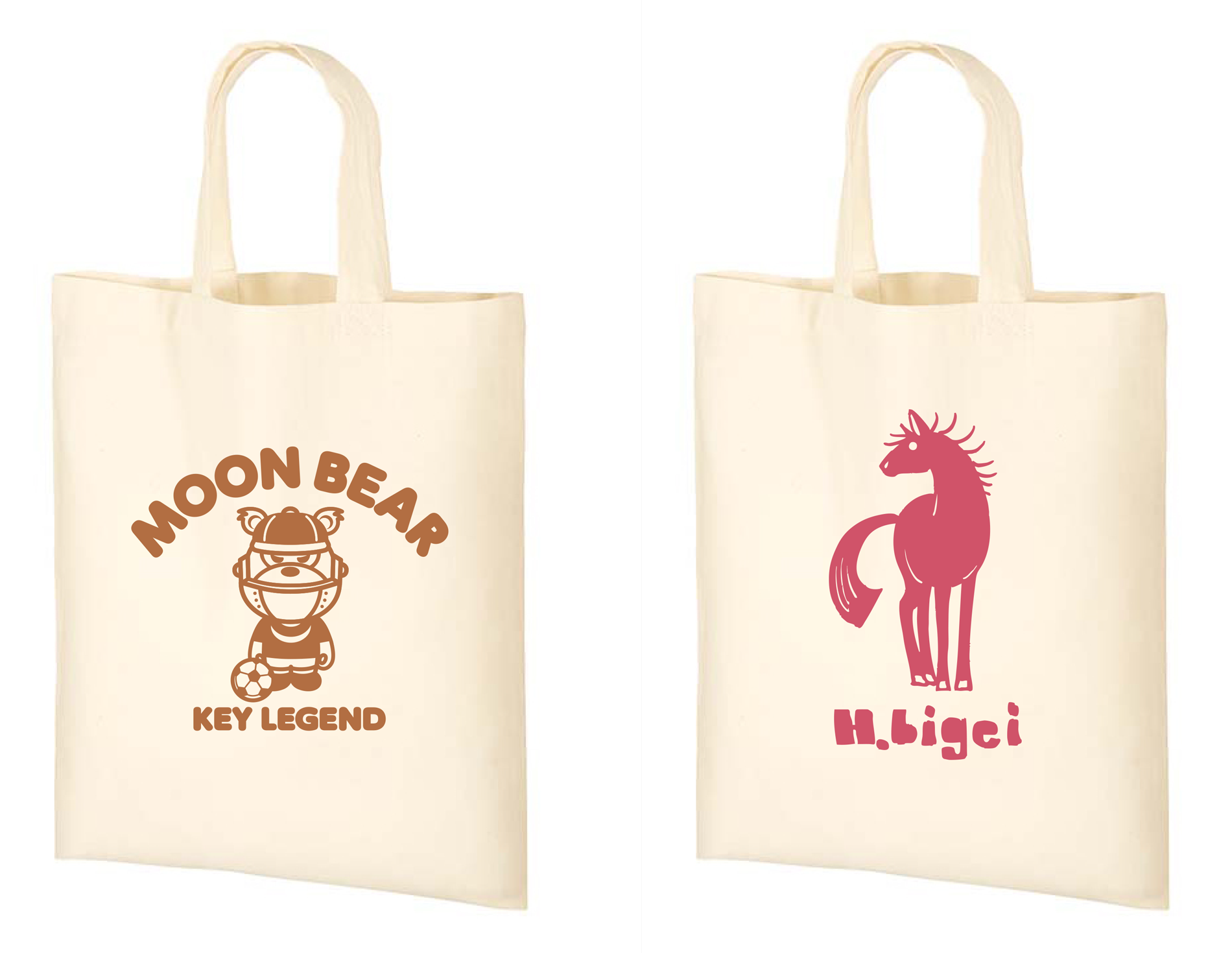 無地のトートバッグに、好きなデザイン(2デザインをご用意します)をお好きな色で。